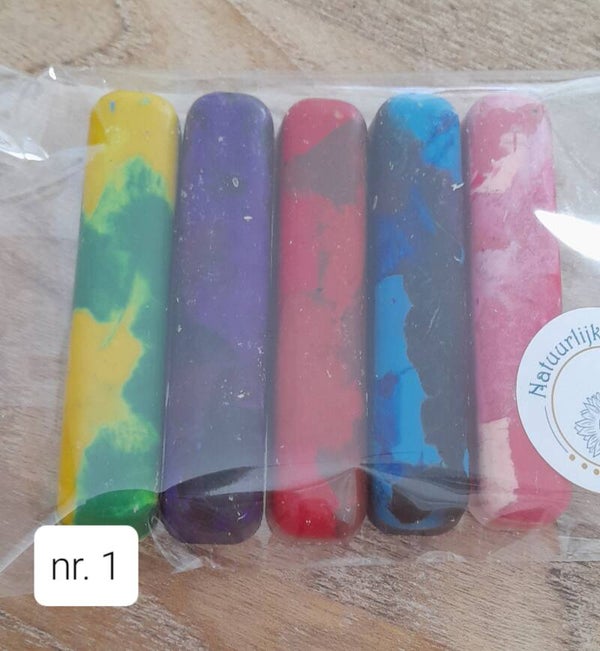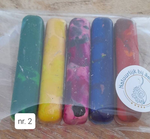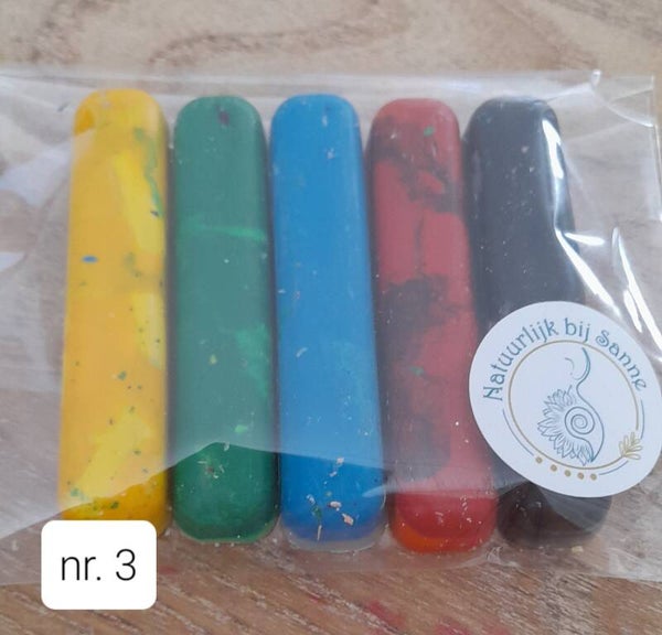 Aangezien weggooien zonde is, hebben we alle stukjes waskrijtjes verzameld en hier nieuwe waskrijtjes van gemaakt.