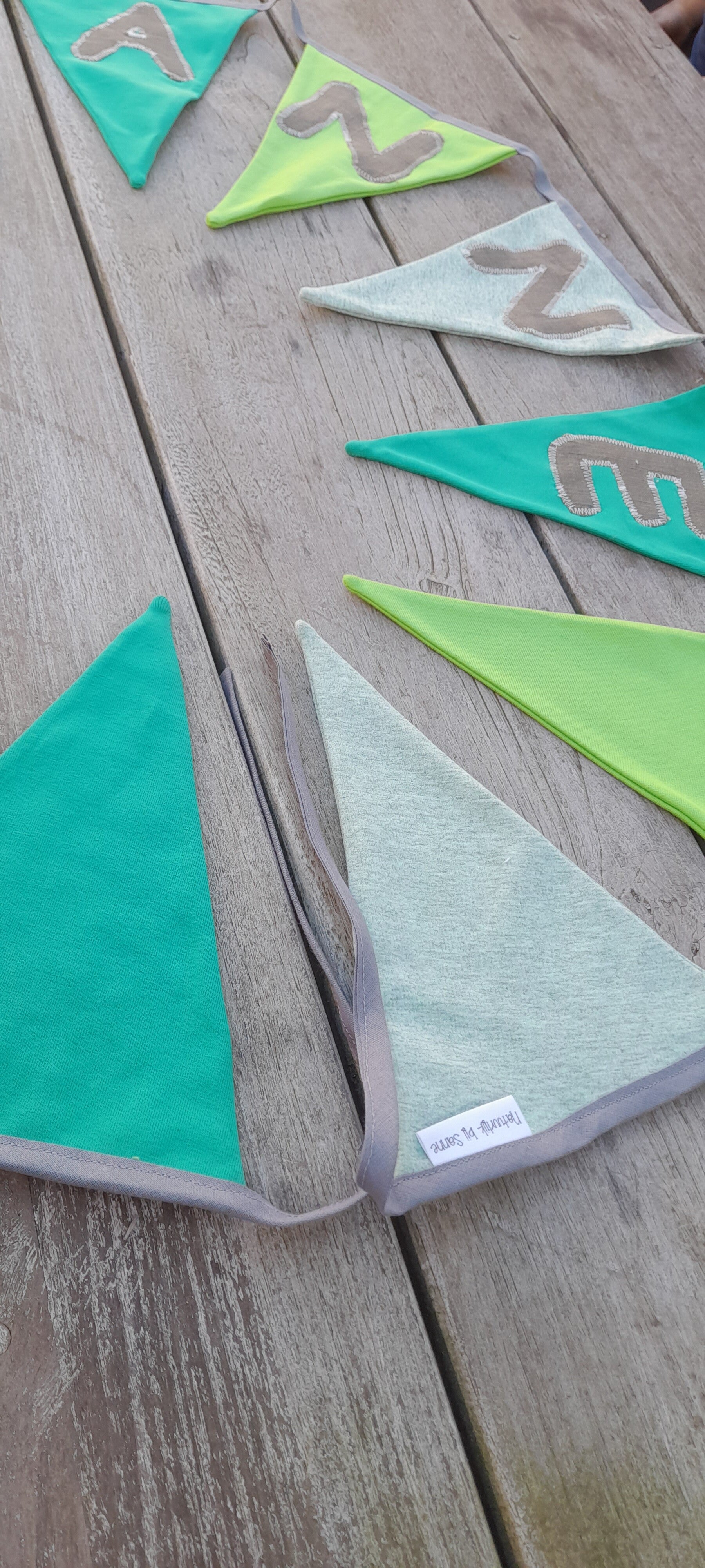 Voorzien van letters is mogelijk in een stoffen variant en er komt per letter dan €1,00 bij.
