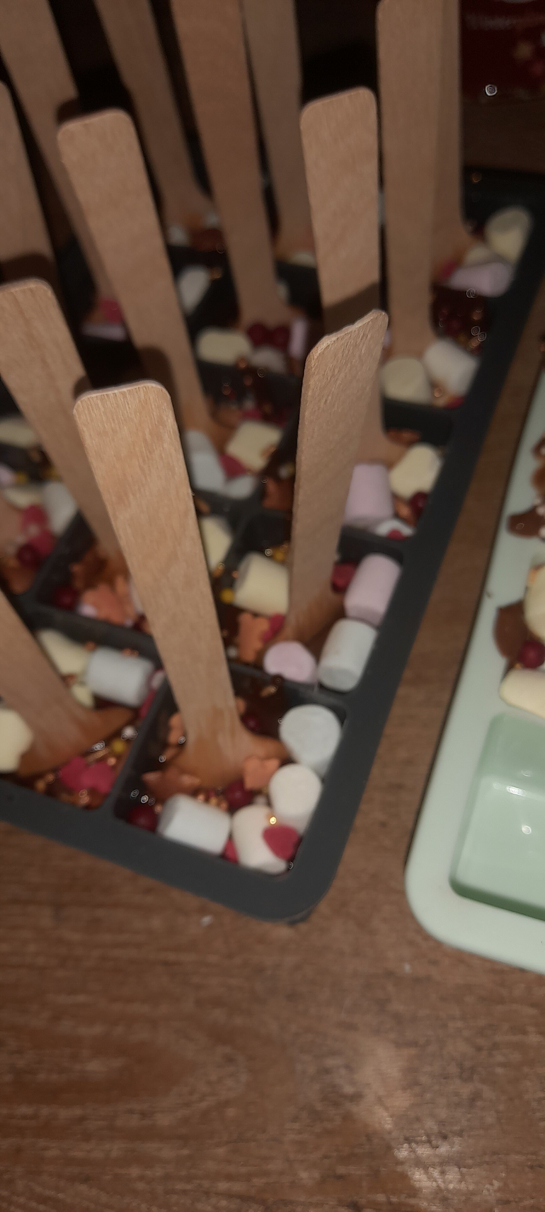 De sticks of lepels kunnen op verzoek gemaakt worden en in 3 varianten.